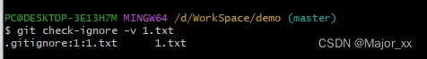 git check-ignore -v {文件或目录路径}