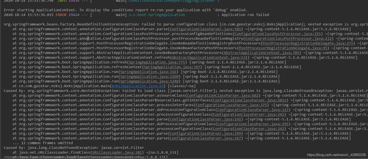 springboot启动报错Failed to load class [javax.servlet.Filter]的解决