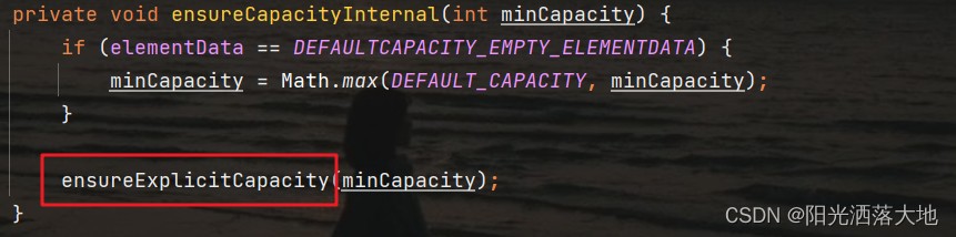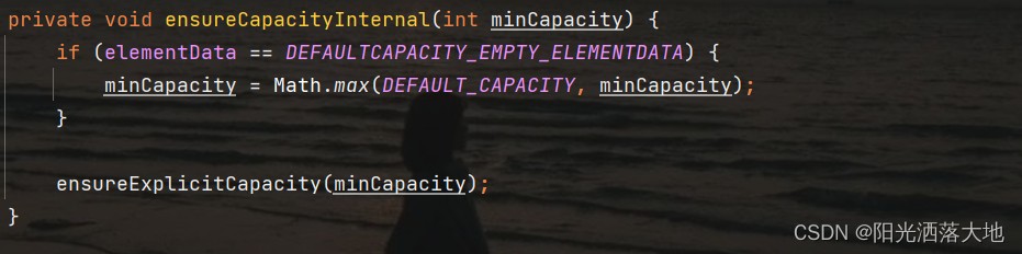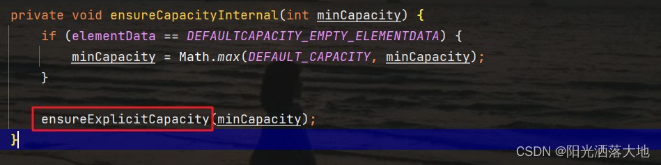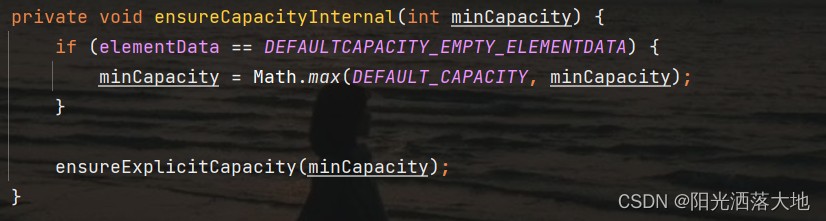 然后利用 if判断,前面提到过,elementData是DEFAULTCAPACITY_EMPTY_ELEMENTDATA赋值得到的,所以现在它们两个相等。