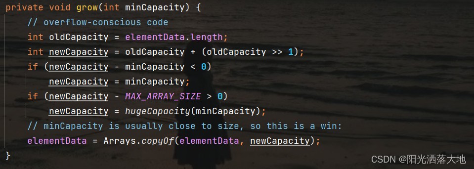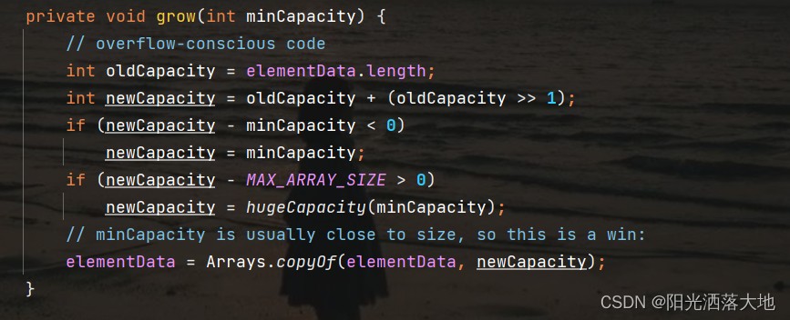 语句:elementData = Arrays.copyOf(elementData, newCapacity);