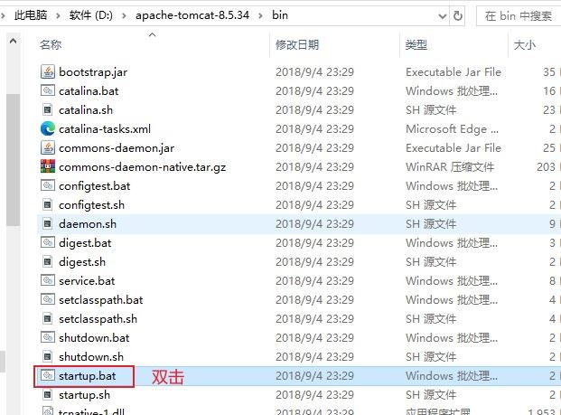 4.双击bin目录下的startup.bat脚本启动Tomcat