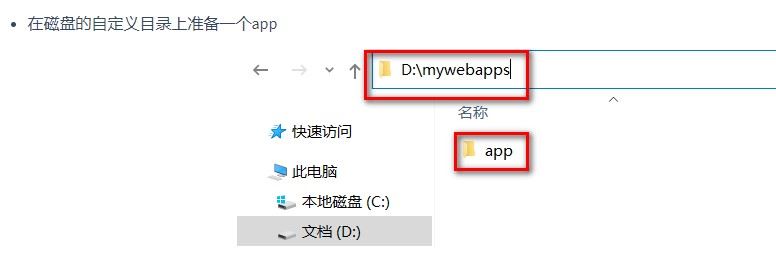 <Context path="/app" docBase="D:\mywebapps\app" />启动tomcat访问测试即可