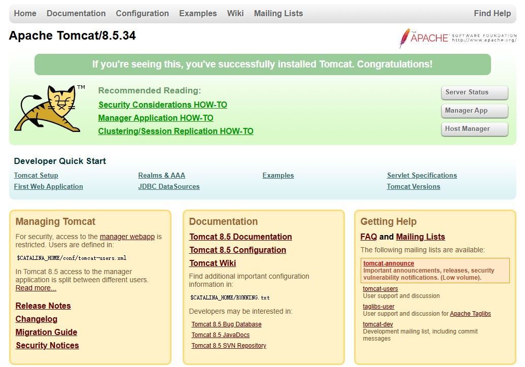 出现下面的页面,就说明Tomcat服务器访问成功。