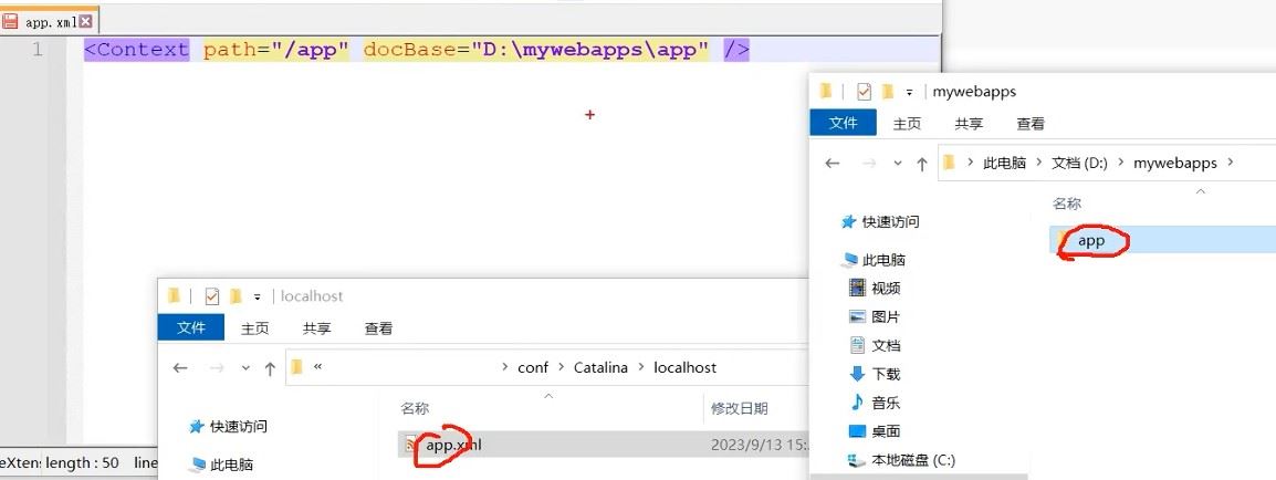 在tomcat的conf下创建Catalina/localhost目录,并在该目录下准备一个app.xml文件