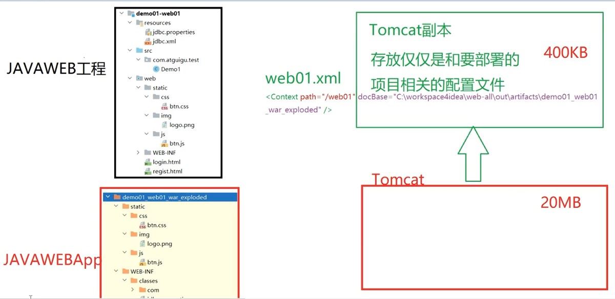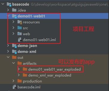 - web对应demo01_web01_war_exploded,demo01_web01_war_exploded就是可以在Tomcat中发布的app;