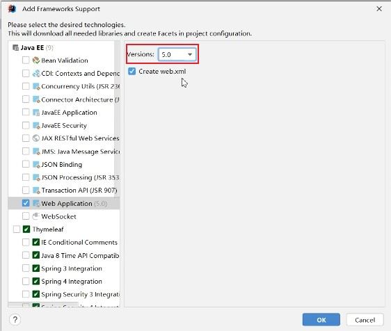 再重新勾选Web Application,选择5.0版本