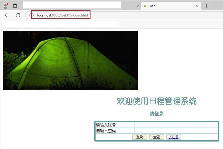 浏览器地址栏输入:http://localhost:8080/