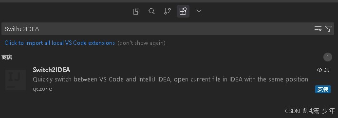 Ctrl + Shift + X 搜索插件。