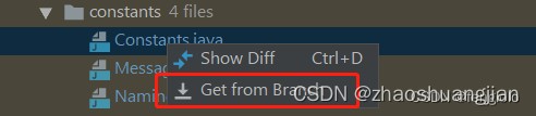 选择要合并的文件,右键点击get from branch