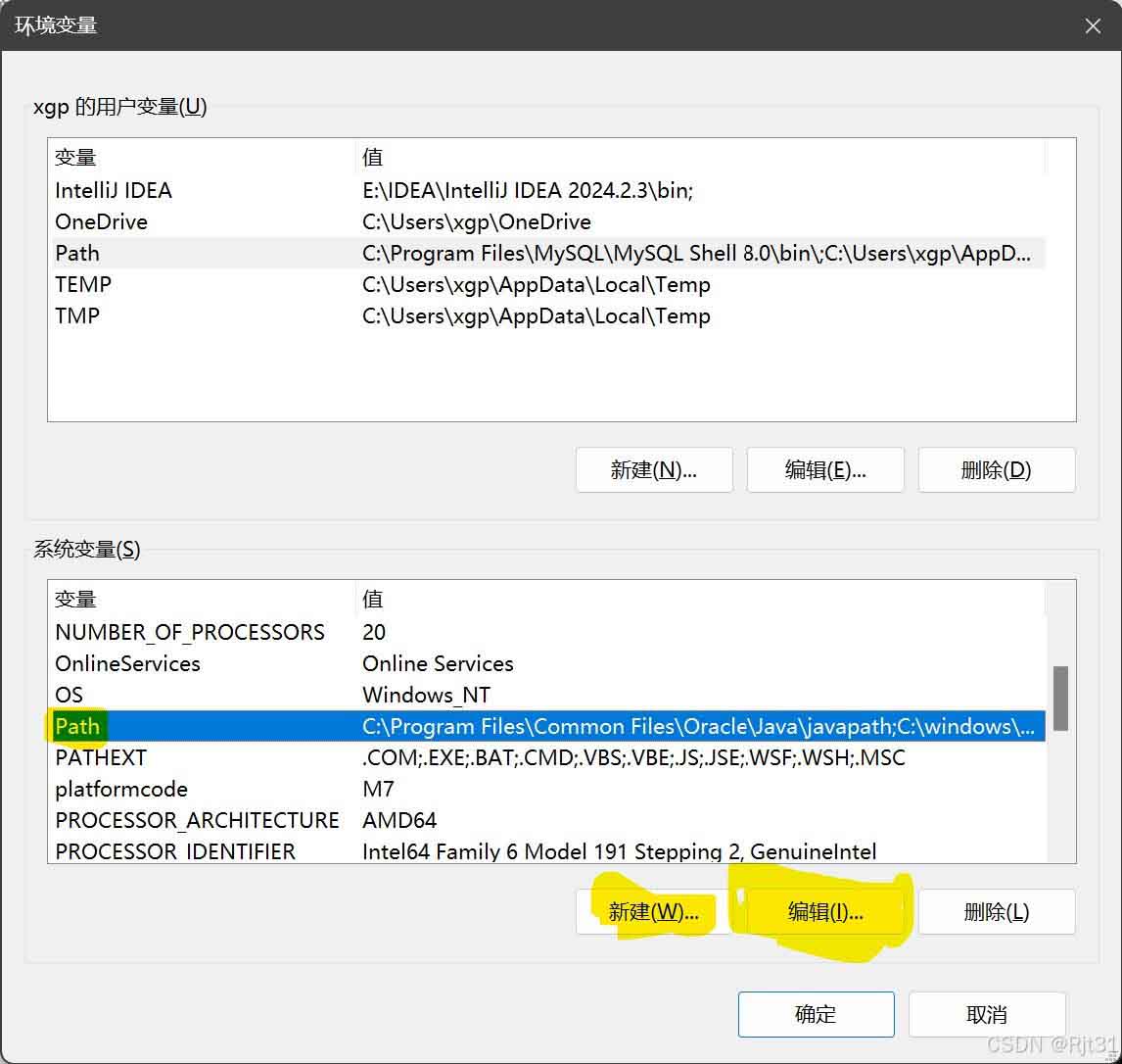 找到系统变量中的Path变量,点击“编辑”按钮。