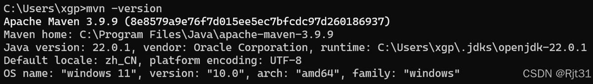 打开命令提示符或终端窗口输入命令来验证MAVEN是否安装正确: