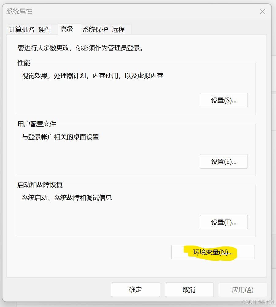在系统属性窗口中,点击环境变量按钮。