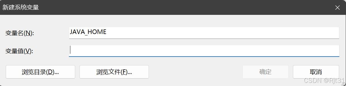 输入变量名为JAVA_HOME,变量值为JDK的安装路径
