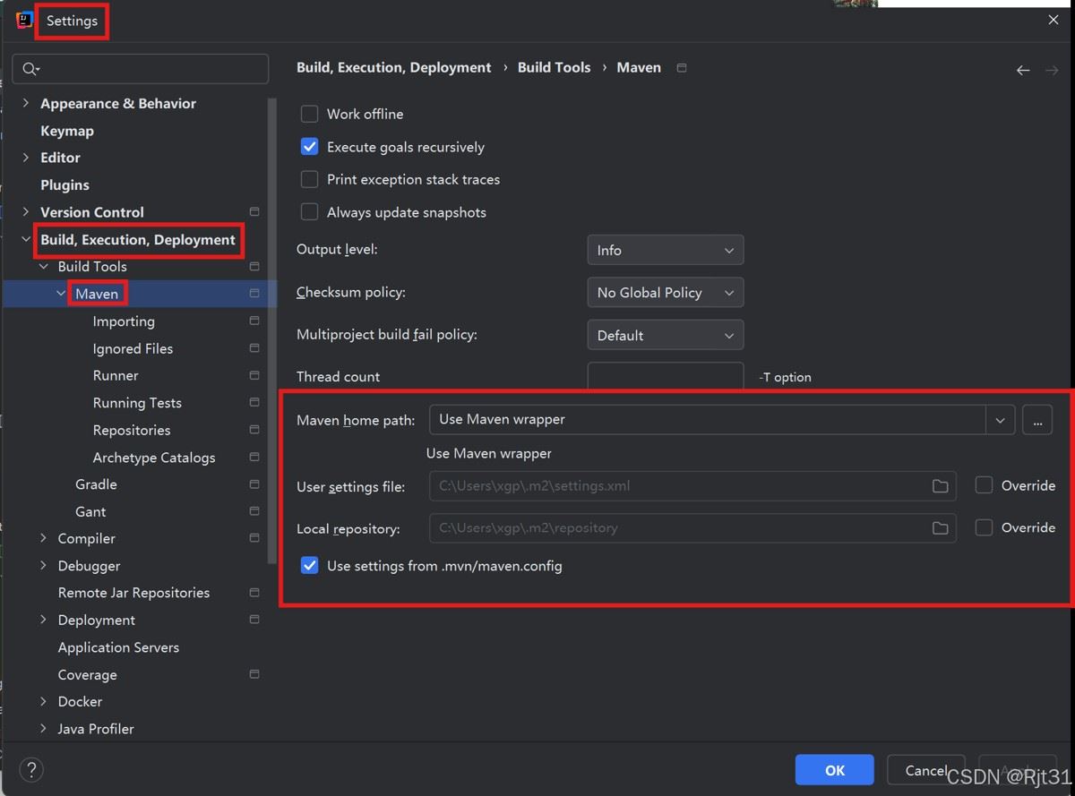选择自己Maven存放的路径;然后选择下一行的User settings file,选择settings.xml文件的存放路径,最后指定本地仓库路径