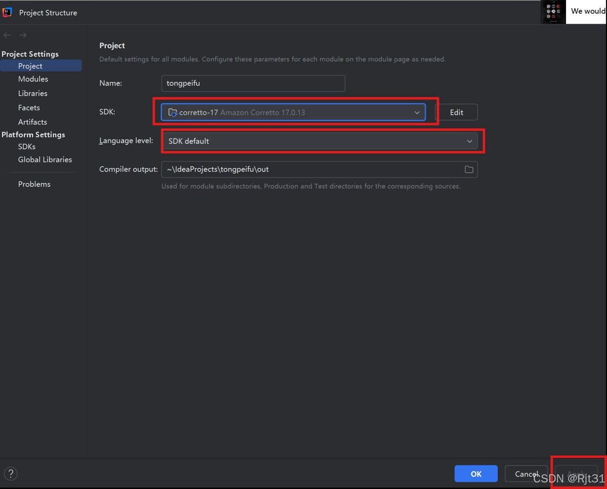 Project SDK后,Project language level选择SDK default.(不能比项目的版本高!)