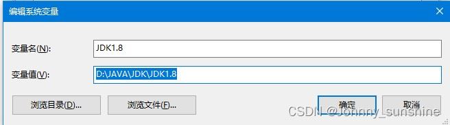 “JDK1.8”,变量值指定路径为"D:JAVA\JDK1.8"(具体的安装路径)
