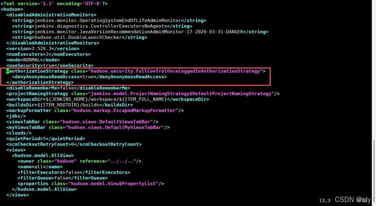 <authorizationStrategy class="hudson.security.FullControlOnceLoggedInAuthorizationStrategy"> <denyAnonymousReadAccess>true</denyAnonymousReadAccess> </authorizationStrategy>