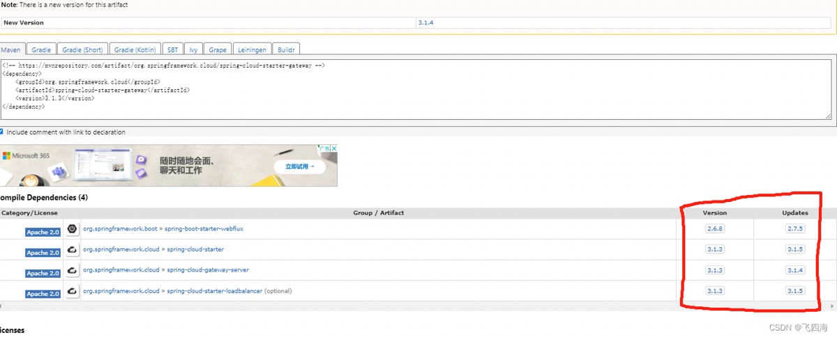 查看maven仓库:https://mvnrepository.com/artifact/org.springframework.cloud/
