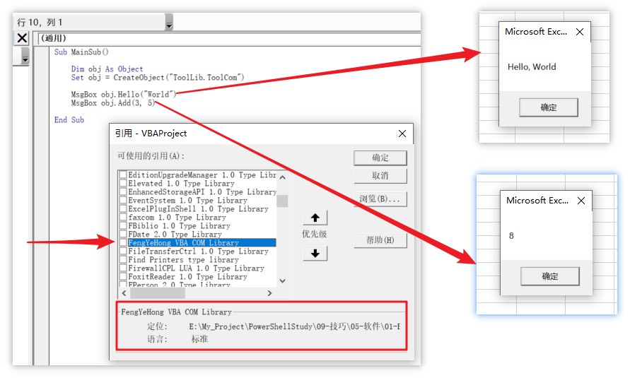 🔷当.dll类库注册到系统之后,vba就可以正常使用该类库了。