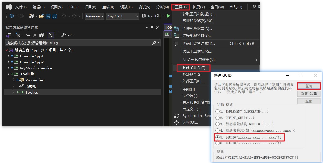 [ComVisible(true)]:设置Com可见, 否则vba无法使用[Guid("xxxxx-xxxx-xxxx-xxxxxxx")]:类库的唯一标识符,可以使用 Visual Studio 生成。