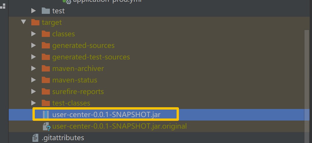 target目录获取Jar包(如user-center-0.0.1-SNAPSHOT.jar)。