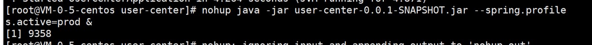 nohup java -jar user-center-backend-0.0.1-SNAPSHOT.jar --spring.profiles.active=prod &