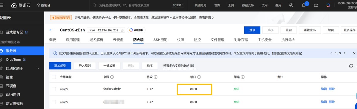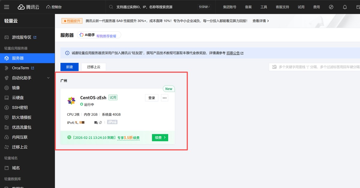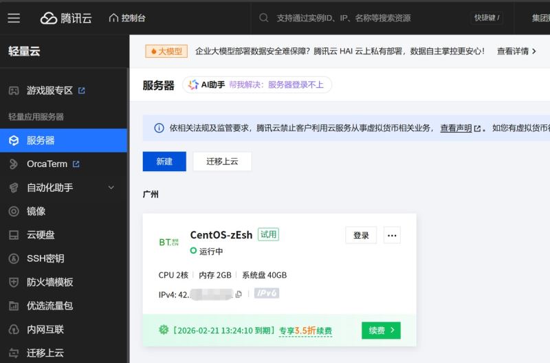 服务器:我使用的是腾讯云轻量应用服务器(2核2G+5M带宽),操作系统选择CentOS 7/8或OpenCloudOS。