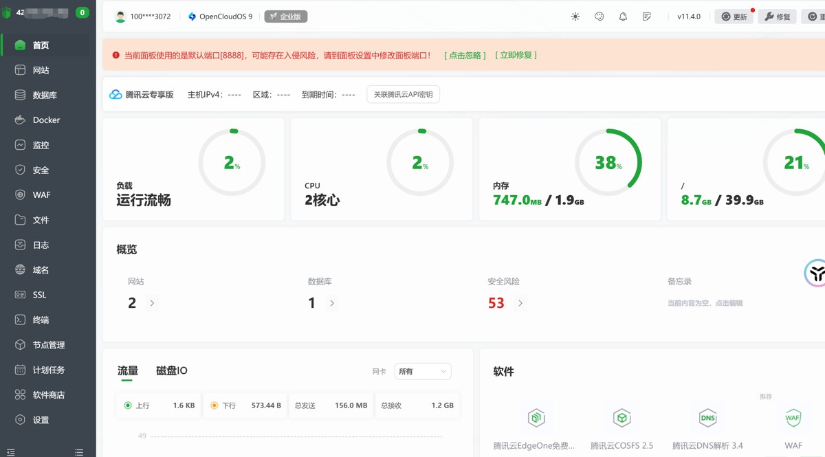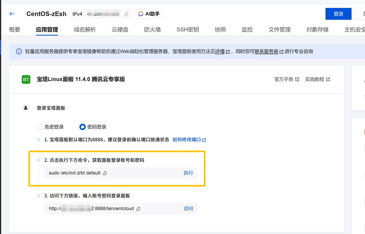 我们可以安装宝塔Linux,也可以选择使用腾讯云服务器自带的宝塔Linux。【这里我使用服务器自带的】
