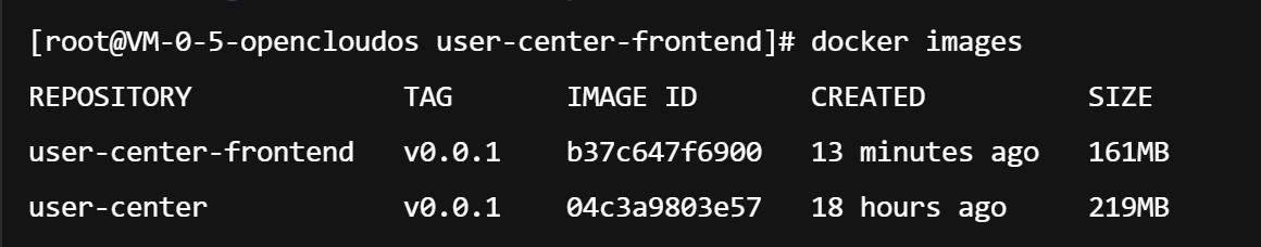 [root@VM-0-5-opencloudos user-center-frontend]# docker run -p 8080:8080 user-center-backend v1.0 Unable to find image 'user-center-backend:latest' locally
