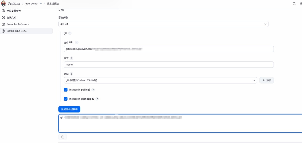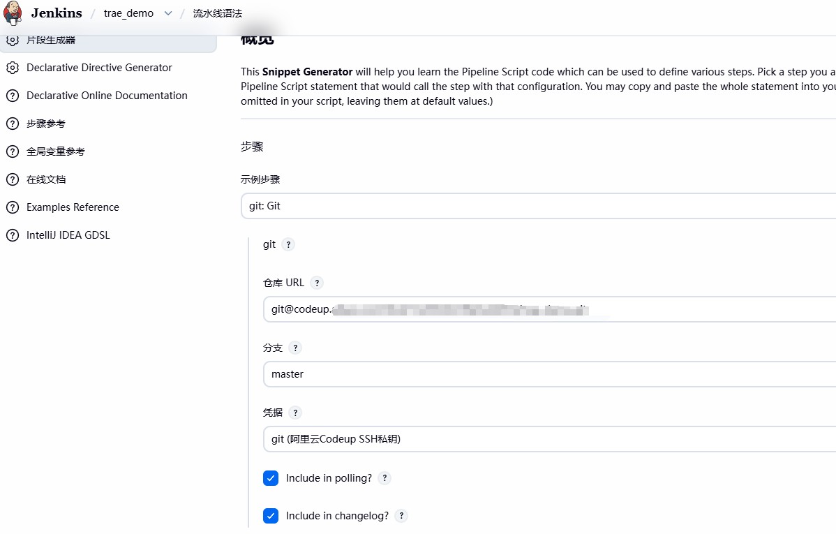credentialsId: 'codeup-xxxx' // 你在 Jenkins 中创建的凭证ID