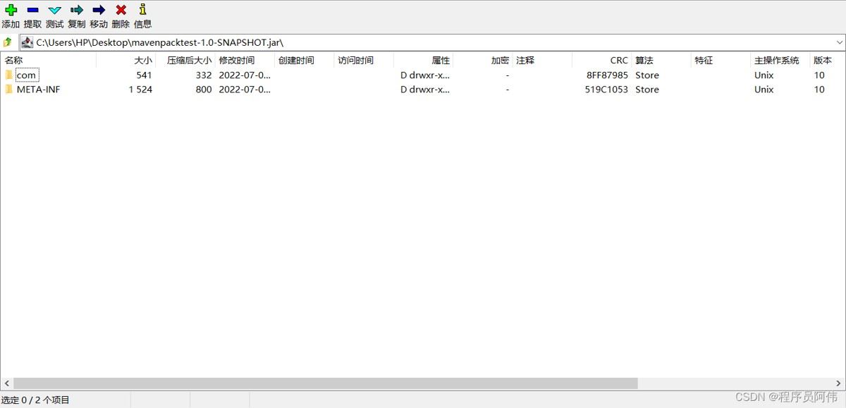 这里我可以告诉你,并不能运行,因为我们打包的时候并没有去指定启动类的路径,也就是在META-INF目录下的MANIFEST.MF文件中指定启动类。