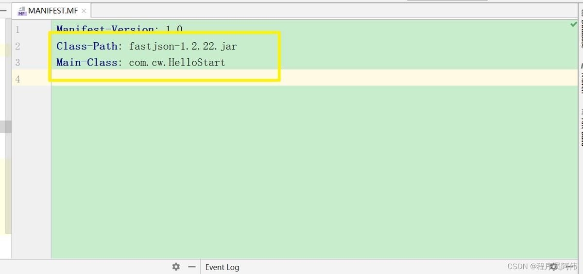 可以看到MANIFEST中已经生成了jar的存放路径和启动类的路径