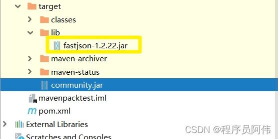 这两个插件是一起使用的,首先是不推荐使用这种,此种打包方式有一个比较明显的缺点:打包后会在target目录下生成lib目录(存放依赖 Jar)和项目 Jar。也就是说由于依赖都存在于lib目录中,所以要想运行 Jar 包,必须将 Jar 包和lib目录放在同一个路径下。