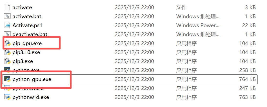 给pip和python取不同的名字,并加入环境变量,这样之后使用pip_gpu和python_gpu就是该虚拟环境中的解释器了。