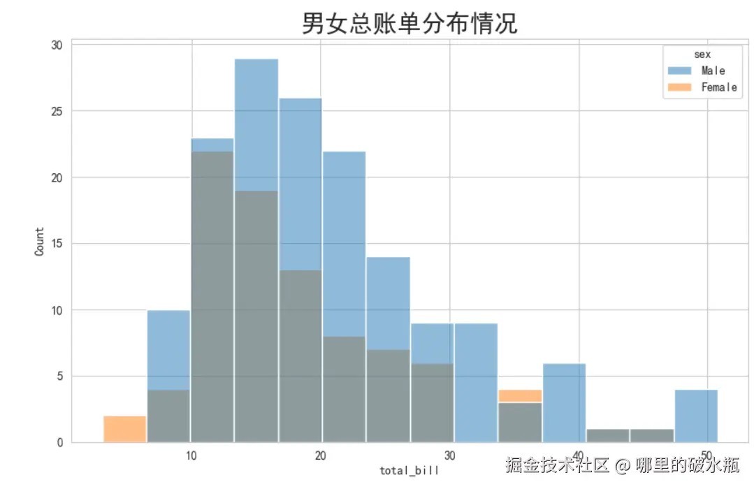 ax.set_title('男女总账单分布情况', fontsize=20)