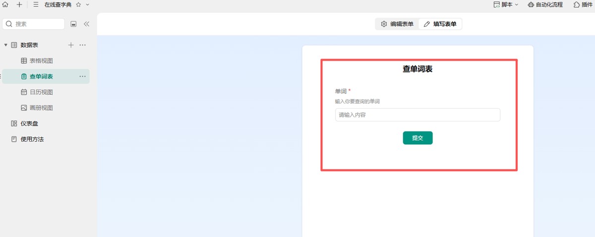 也可以新建一个表单视图,共享给别人后,可以多人一起输入生词,一起协作。
