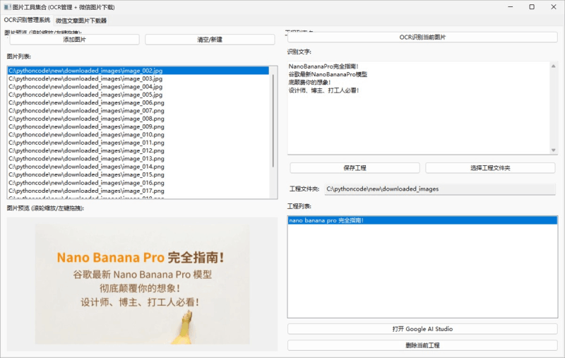 在日常工作中,我们经常面临两个零碎但繁琐的需求:一是管理大量的OCR(文字识别)图片素材,需要频繁查看、缩放图片并保存识别结果;二是看到优质的公众号文章,想把里面的图片批量下载下来保存素材。