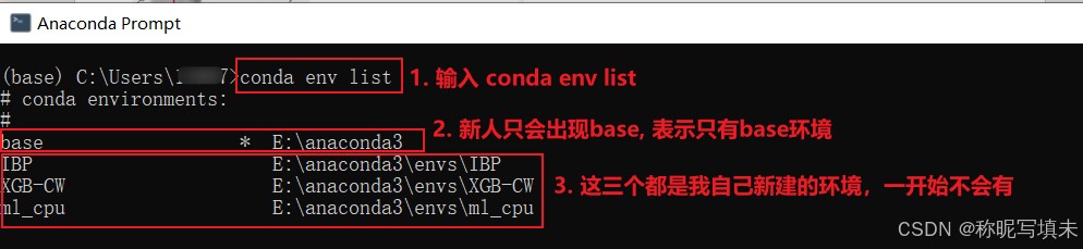 我们类比认为是我们生活的“大宇宙”;而下图还有三个分别名叫IBP、XGB-CW、ml_cpu的虚拟环境,均是我自己创建的,我们类比理解为“小宇宙”。