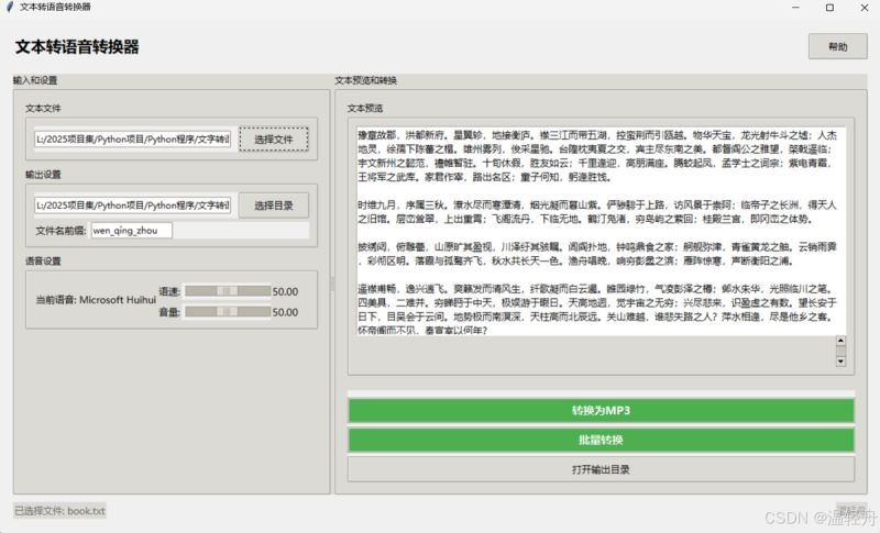基于Python和Tkinter实现文本文件转换为MP3语音文件