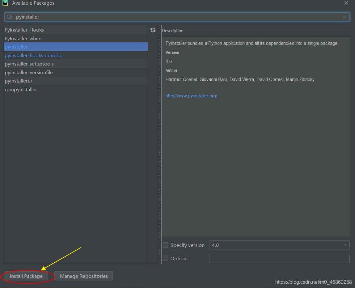在pycharm里面安装pyinstaller