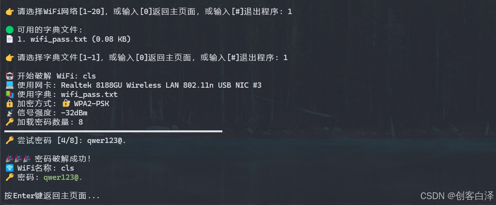 本文介绍的白泽WiFi审计工具,正是基于Python pywifi库开发的专业级无线安全评估工具,具备以下核心价值: