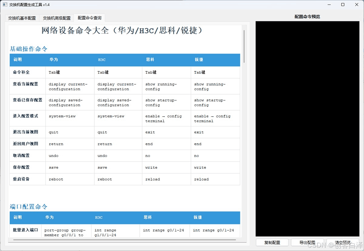 - 跨厂商支持:华为/华三/思科/锐捷四厂商命令自动转换