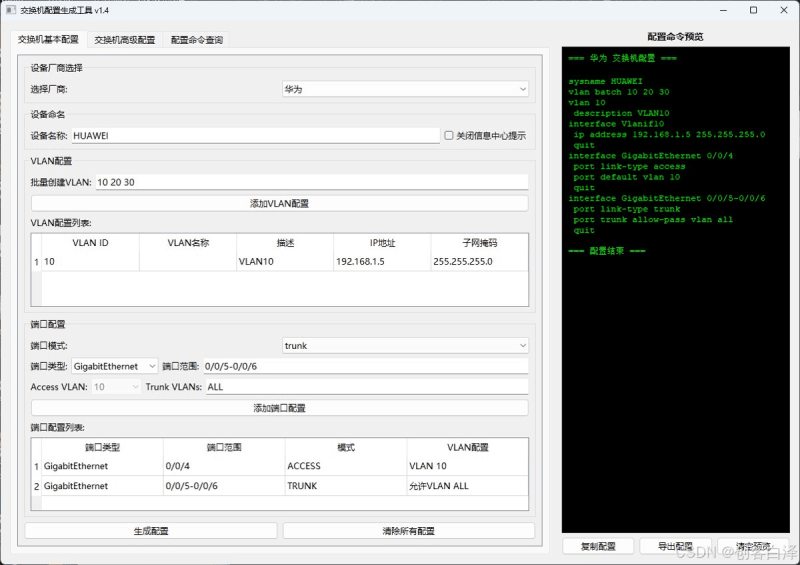本项目为网络工程师提供了一个高效可靠的配置工具,显著提升了网络设备配置的效率和准确性。随着功能的不断完善,有望成为网络运维工作中的标准工具之一。