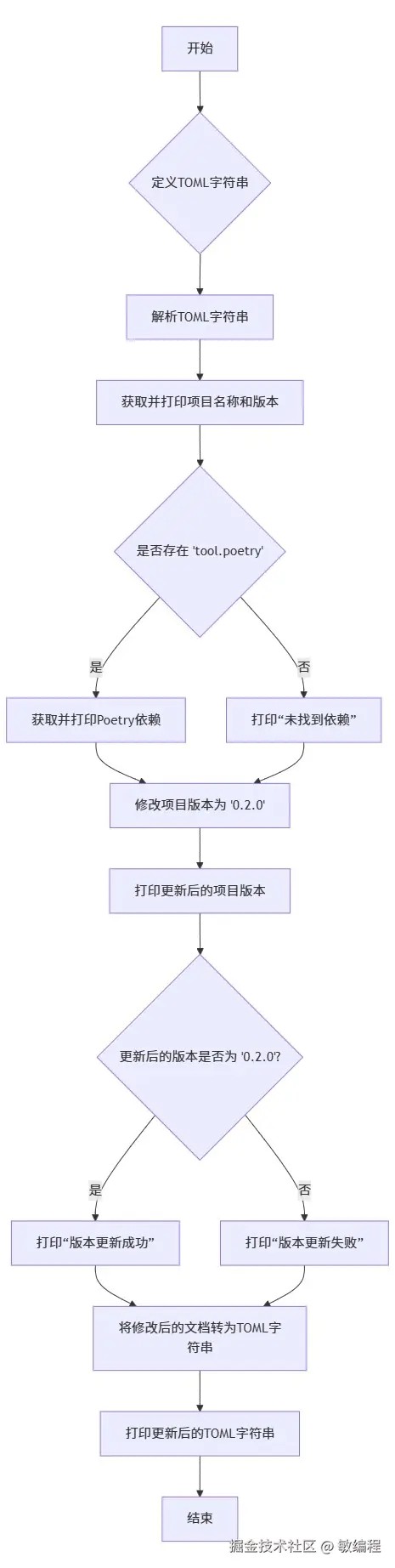 文章介绍了TOML格式及其Python库tomlkit,应用于项目配置管理、应用程序配置、自动化脚本等场景,提供了安装方法、示例代码和学习资源,并附带了在线运行代码和流程图,需要的朋友可以参考下