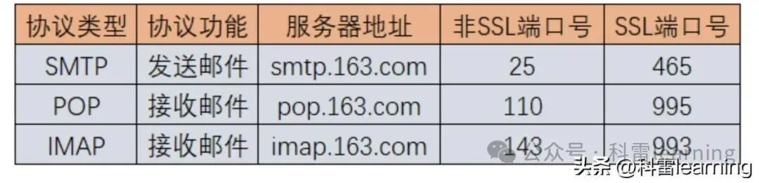 163邮箱的服务地址和端口如下: