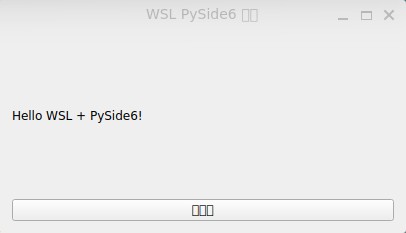 self.label = QLabel("Hello WSL + PySide6!")