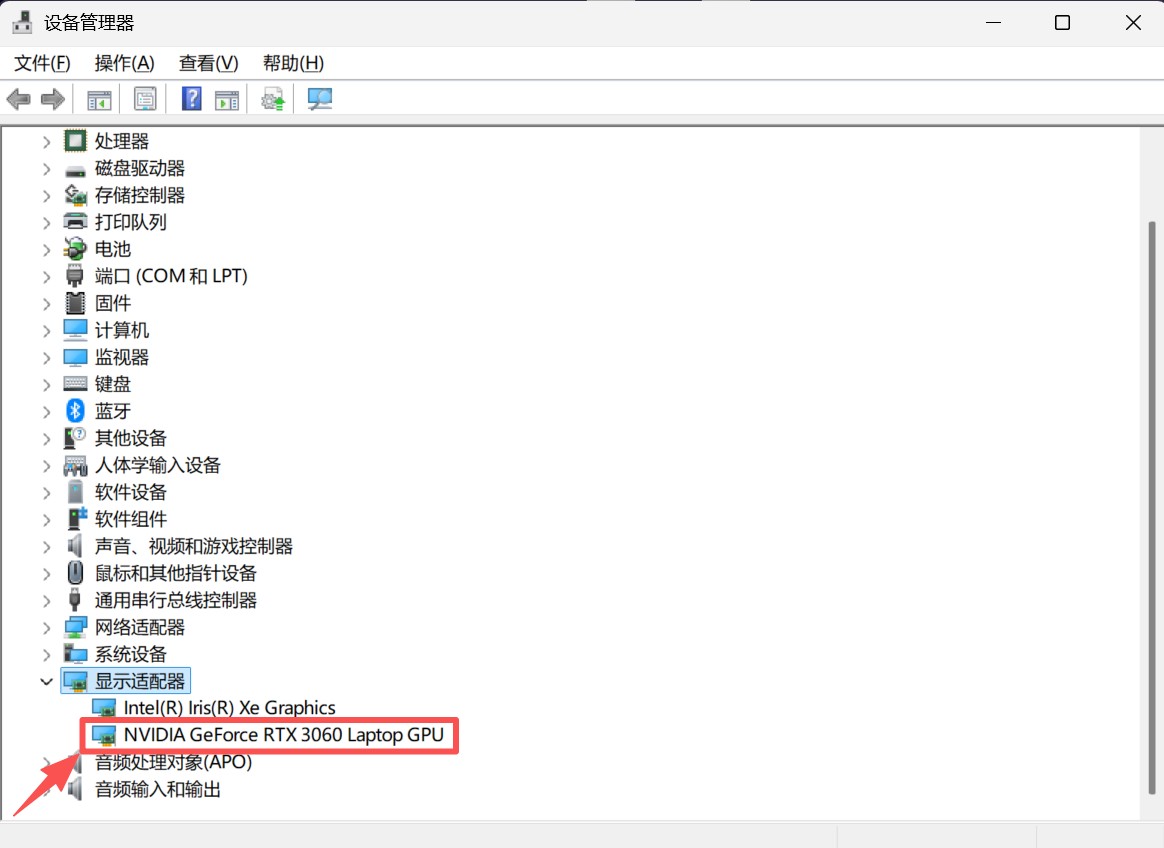 就可以进入到设备管理器页面,在此页面打开显示适配器,GPU 前带 NVIDIA就没问题了。
