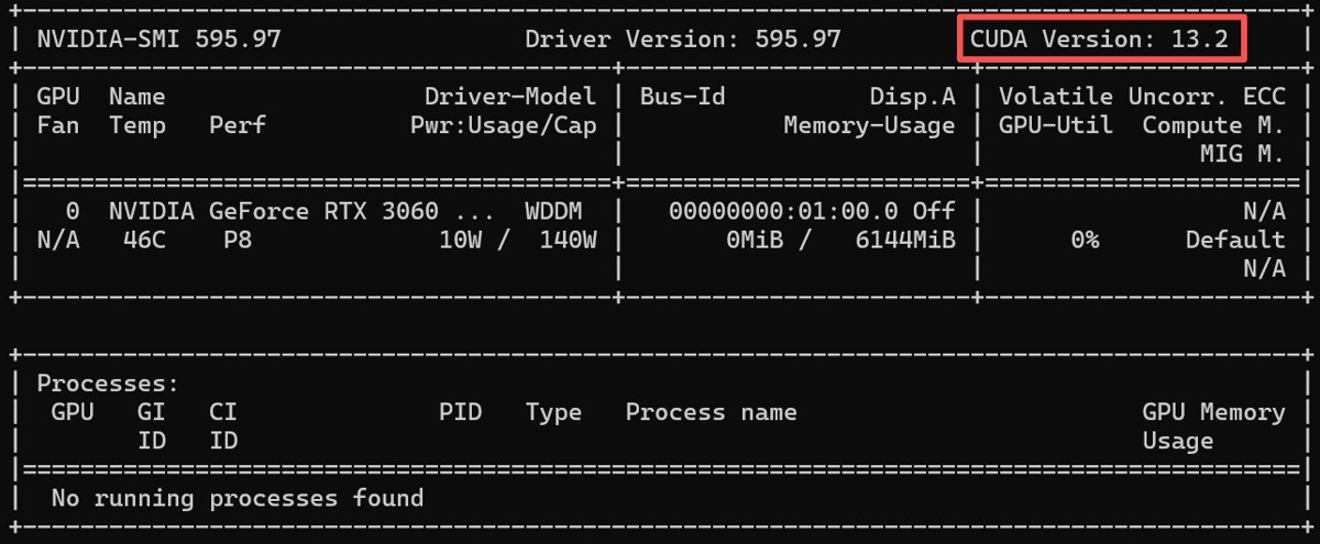 建议 本机的CUDA 版本 >= 安装的CUDA版本,例如我的版本是13.2 > 12.6 就可以