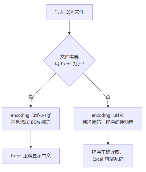| CSV 写(含中文) | encoding="utf-8-sig" | Excel 打开不乱码 |