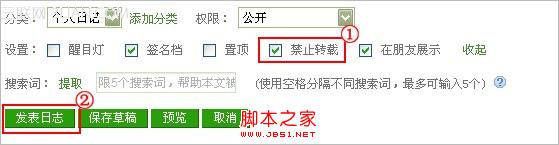 为了保护日志原作者文章的权益可以设置日志不让他人转载,设置之后他人在浏览该篇日志就不会显示转载的铵钮,具体的操作步骤如下,感兴趣的朋友可以参考下